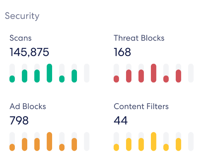 network scans, blocked threats, ad blocks, content filters,